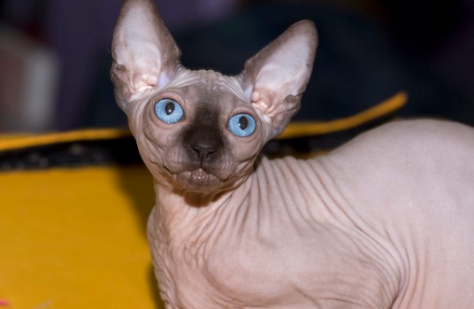 Une race populaire de chats exotiques sans poils avec une apparence extraterrestre sans moustaches. En raison de l'absence de racine des cheveux, il ne transporte pas d'allergènes dans l'appartement. Ils ne sont pas dans la salive de l'animal. L'inconvénient est qu'il nécessite un lavage fréquent de l'animal et un nettoyage en profondeur des oreilles. Il est également important de contrôler que le chat ne surchauffe pas ou ne gèle pas à cause d'une peau complètement nue. Un animal à vocation humaine nécessite une attention constante, aime regarder tout ce qui se passe dans la maison, parle souvent avec le propriétaire, aime être caressé et caressé. S'entend bien avec les autres chats et chiens. Le coût d'un chaton est de 10 à 50 000 roubles.