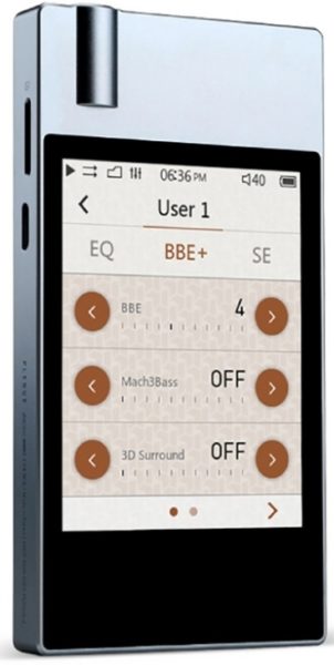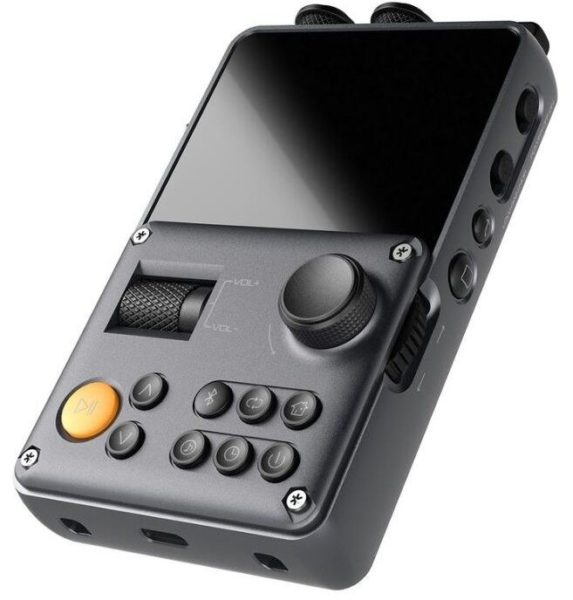 Le lecteur Hi-Fi n'a pas de mémoire intégrée, tous les enregistrements sont stockés sur une carte mémoire jusqu'à 128 Mo. La carte est achetée séparément. L'appareil lit 6 types de formats. Il y a une interface sans fil Bluetooth, une sortie ligne pour se connecter à un ordinateur. Peu de choses sont notées sur l'écran, seul le type est indiqué - OLED. A l'intérieur, sa propre batterie Li-Ion est intégrée, la charge s'effectue via une prise USB de type C. La puissance du canal sonore est de 125 mW, le bruit atteint 95 dB. Le lecteur est reflashé, le volume est ajusté par un égaliseur numérique. Contrôlé par des boutons.