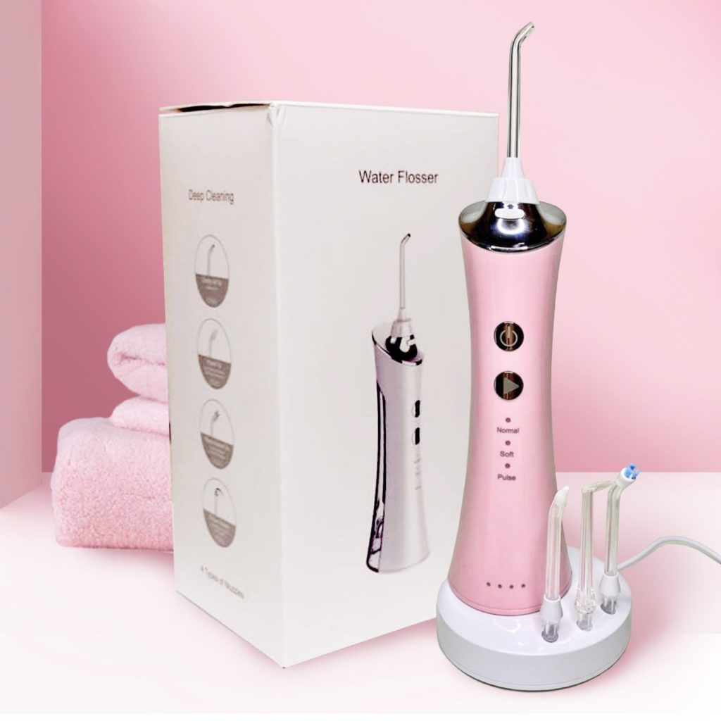 Irrigateur sans fil, avec réglage du jet par paliers. La buse orthodontique nettoie bien les accolades. Comprend 4 buses.Sa propre batterie puissante tient la charge pendant longtemps. Il y a une charge USB. Coût : 5900 roubles.