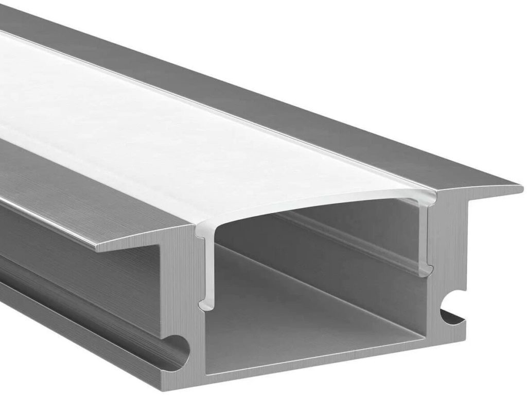 L'ensemble se compose d'un profil, diffuseur. Il a une forme en U avec des côtés extérieurs, des évidements. Il se ferme avec un diffuseur translucide et mat.