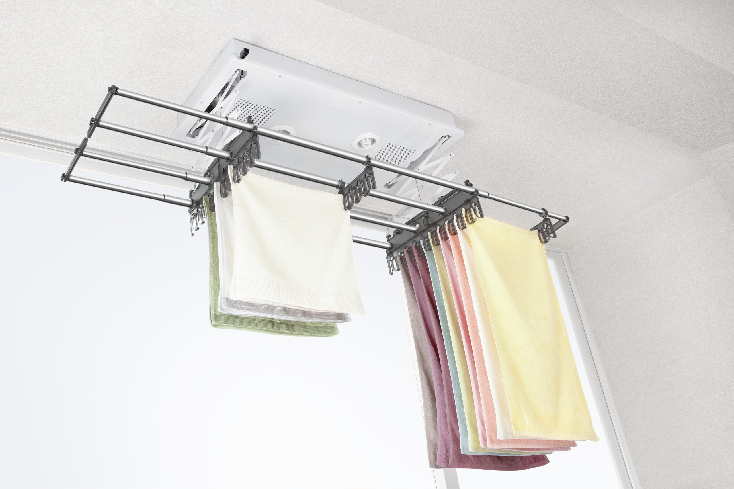 Modèle pliable de la marque sud-coréenne, adapté pour une installation sur les balcons, les salles de bain et même les cuisines. Une fois plié, c'est un plafonnier.Gochu PSN-AH10A est équipé d'un ventilateur, qui vous permet de sécher rapidement et facilement des objets de toutes tailles. La structure est contrôlée par une télécommande. Le matériau durable utilisé dans la fabrication du modèle vous permet d'y suspendre jusqu'à 30 kg de linge. Si le poids dépasse de manière significative le poids autorisé, le Gochu PSN-AH10A est automatiquement bloqué.