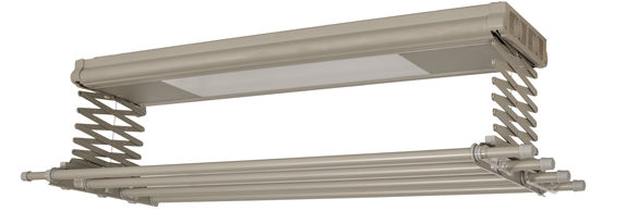 Ce type est considéré comme technologiquement avancé et confortable à utiliser.Selon le principe d'utilisation, il est similaire aux structures transversales telles que les ciseaux, mais présente une différence significative, le mécanisme des produits est électrique. Les modèles de ce type offrent souvent un rétroéclairage ou une couverture complète de la zone située en dessous d'eux. Également trouvé combiné avec une lampe ultraviolette pour la désinfection et un appareil intégré avec une minuterie d'arrêt automatique pour un séchage rapide. Ces modèles ont un boîtier en acier pour protéger les pièces électriques, les barres transversales sont en aluminium ou en acier inoxydable, ce qui les rend résistantes à l'humidité. Le contrôle de ces séchoirs est effectué à l'aide d'une télécommande ou d'une unité de commande murale. Les éléments chauffants peuvent atteindre des températures allant jusqu'à +40 degrés.