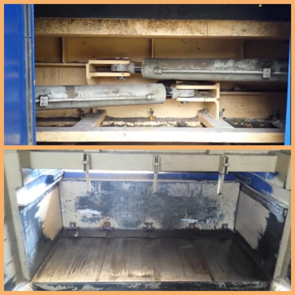 L'échelle de compression du volume initial : de 3 à 10. La masse initiale est compactée et comprimée par la plaque de pressage avec avancement ultérieur dans le récipient de réception. Le mouvement de la plaque de pressage a un caractère cyclique avec la capture constante d'un nouveau lot de déchets. Lors du remplissage du conteneur de réception, le bloc de déchets est retiré et acheminé vers le site d'élimination, en règle générale, avec des pinces spéciales.