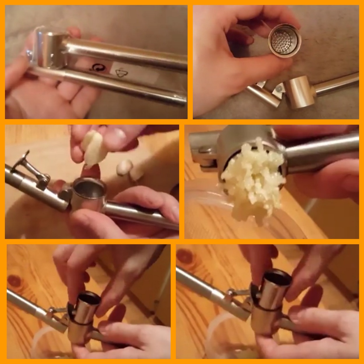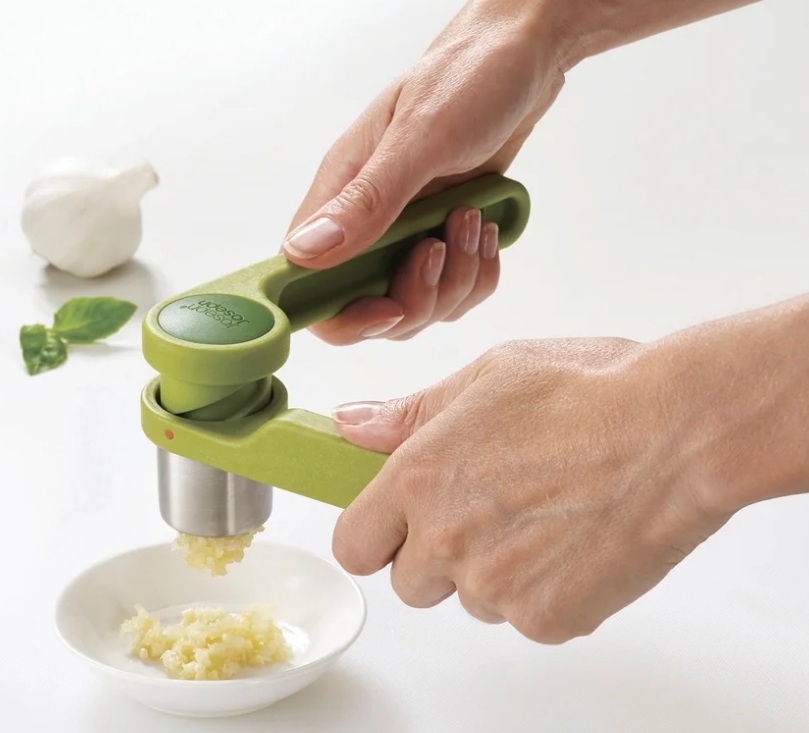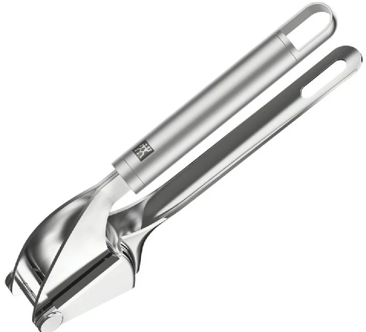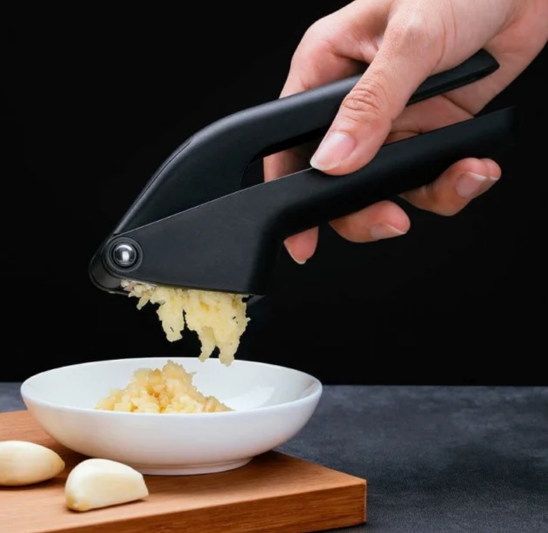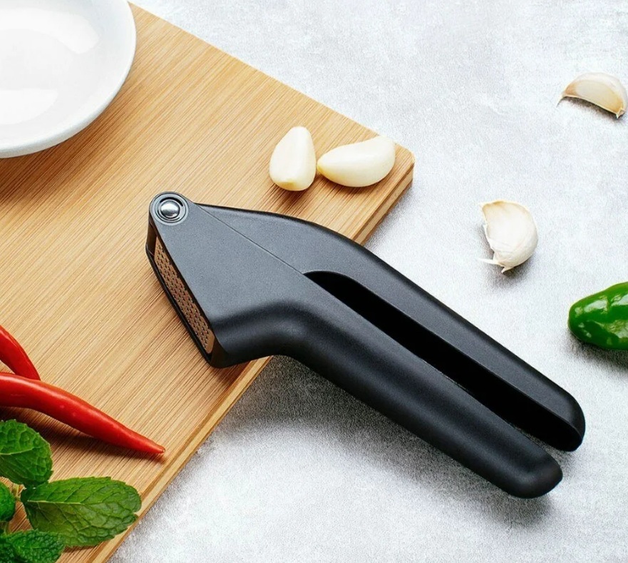 La presse, unique dans sa conception, ressemble à une pince et permet d'écraser les gousses d'ail avec un minimum d'effort.