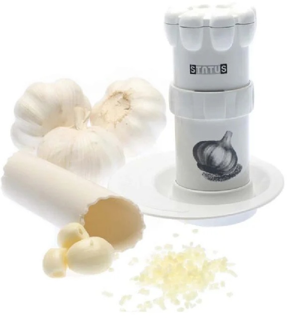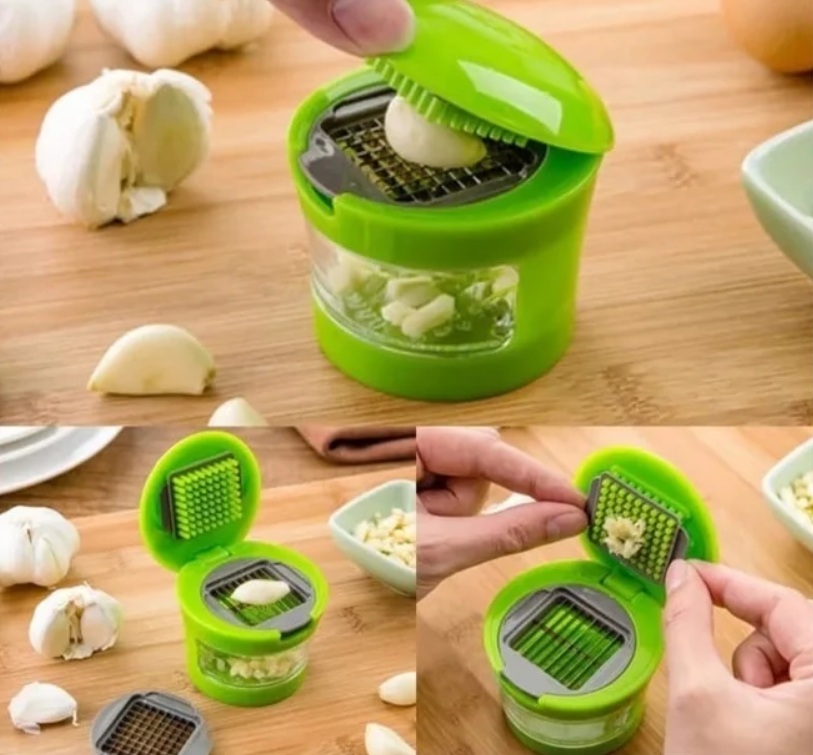 Les broyeurs multifonctionnels, qui, en plus de l'ail, sont capables de hacher des noix, des herbes, des épices, sont un verre en verre ou en plastique avec un couvercle. Les cubes résultants ont une certaine taille. De tels modèles conservent parfaitement l'arôme des plantes.