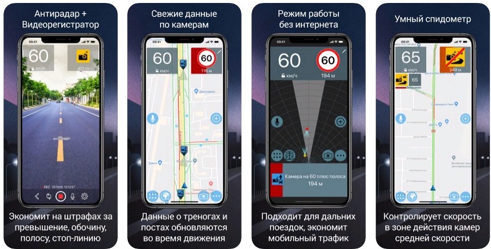 L'une des applications les plus téléchargées en Russie, dépasse même les nouvelles par des notes élevées. Contrôle extrêmement simple avec un minimum de fonctions et de réglages. Après le téléchargement, vous pouvez sélectionner une région russe ou une carte du Kazakhstan, de la Biélorussie, de l'Ukraine. Le détecteur de radar vous avertit des caméras de police et émet un bip si vous dépassez la limite de vitesse de 19 km/h.