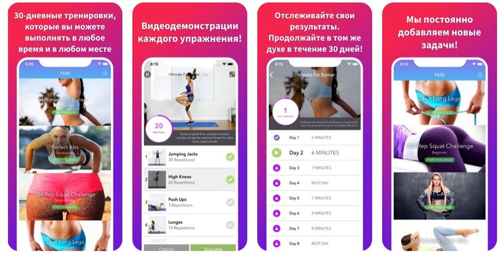 Il existe des complexes pour les femmes enceintes, blessées, vidéo de chaque exercice (vue directe, latérale).