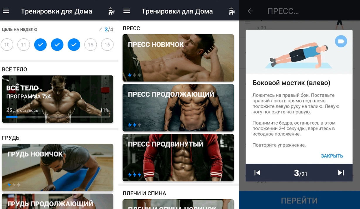 En tant qu'entraîneur personnel au téléphone, l'application Workout for Home est adaptée, elle est présentée en russe et en anglais. Conçu pour établir un plan d'entraînement pour tous les groupes musculaires à la maison. Il fera un plan pour tous ceux qui veulent pomper tous les groupes musculaires à la maison. Il est pratique que vous puissiez faire tout cela par vous-même sans entraîneurs, simulateurs spéciaux et gymnases. Il ne faut qu'une demi-heure par jour pour obtenir le résultat souhaité en un temps assez court.