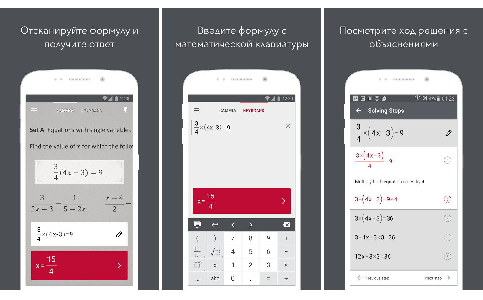 Photomath est présenté en anglais et en russe et est destiné à résoudre des problèmes et des équations mathématiques. S'il simplifie la vie des étudiants, il contribue également à leur épanouissement. Les utilisateurs peuvent voir une solution étape par étape à un problème particulier, vérifier les devoirs et se préparer aux examens et aux tests de mathématiques.