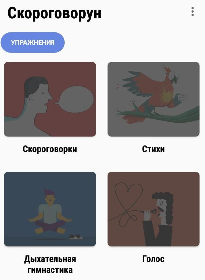 "Skorogovorun" est un développement de programmeurs russes, conçu pour qu'une personne qui a des défauts d'élocution puisse les corriger. L'objectif principal est le développement de la parole intelligible. "Skorogovorun" peut être appelé orthophoniste à domicile, adapté aux personnes de toutes les catégories d'âge. Les cours quotidiens vous aideront à apprendre à exprimer vos pensées magnifiquement et clairement. En tant qu'exercices, les utilisateurs se voient proposer de nombreux virelangues, poèmes, tâches de texte à terminer dans un temps spécifié ou à lire avec le bon stress. En outre, les utilisateurs sont présentés avec des exercices de respiration.