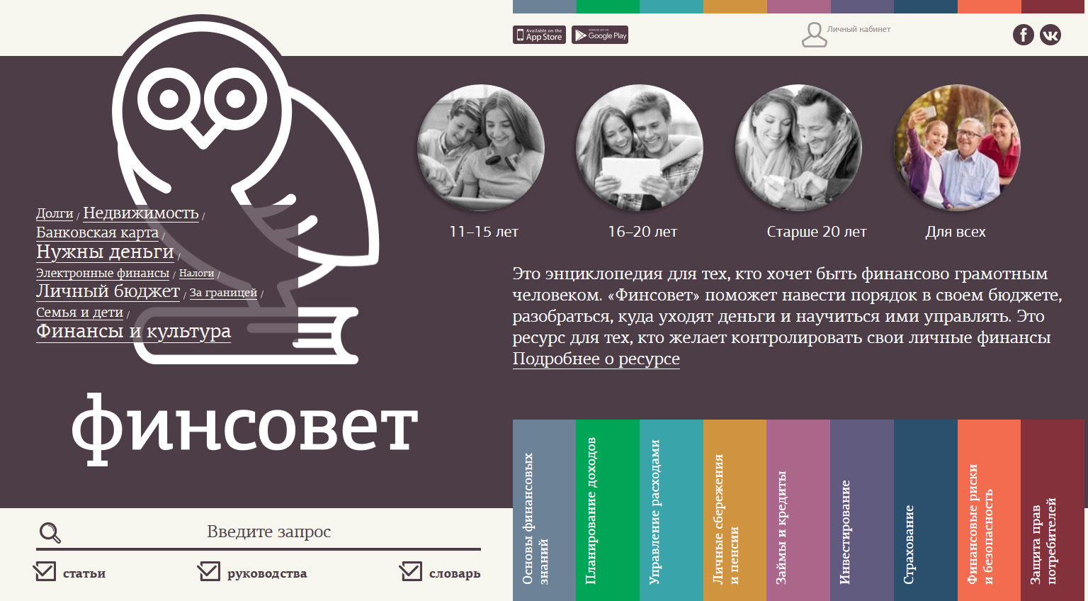 Le Conseil financier, conçu pour ceux qui souhaitent approfondir leurs connaissances dans le domaine financier, est disponible en anglais et en russe. C'est une sorte d'encyclopédie de la littératie financière et vous permet d'élargir vos connaissances dans des catégories telles que la budgétisation personnelle, les prêts et crédits, la comptabilité des dépenses et des revenus, la sécurité financière, l'investissement, etc. Le développement est basé sur divers guides, lifehacks, dictionnaires sur les définitions financières et bien plus encore. L'utilisation du "Conseil financier" vous permettra de mettre rapidement de l'ordre dans votre portefeuille.