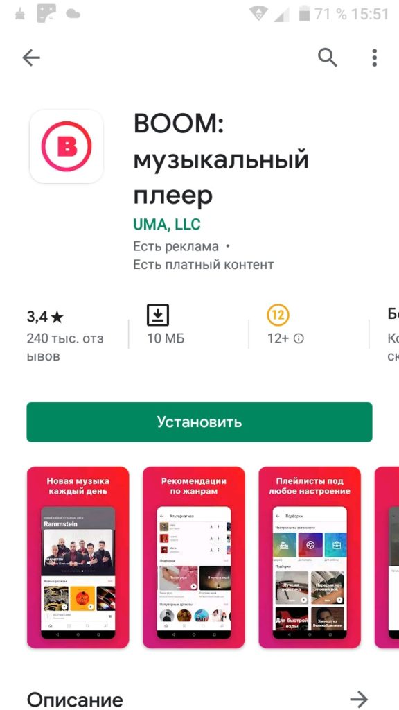 L'outil agit comme un lecteur avec de nombreux paramètres pour améliorer la qualité du son ou augmenter le volume. D'autres services offrent une énorme collection à jouer. Le classement TOP-100 intégré vous permet de vous familiariser avec les pistes les plus populaires. Cependant, le téléchargement via le Play Store n'est actuellement pas possible, car. les principales options sont encore en cours de développement et d'expérimentation. Ici, vous devez immédiatement être prêt à faire face à certains problèmes dus à un sous-développement partiel. Boom lui-même limite l'augmentation maximale du volume et les autres programmes ne s'adaptent pas aux paramètres sélectionnés.