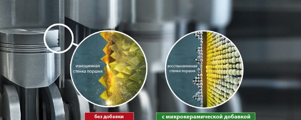 Les promesses sont standard - prolonger de moitié la durée de vie de l'unité, protection, élimination des coups de pied et restauration de la pression dans le système hydraulique. Mais la description du travail de l'additif est beaucoup plus intéressante, selon le fabricant, la composition, pénétrant dans la zone de friction, nettoie d'abord les surfaces des dépôts de carbone.Après l'alliage, les composants en céramique comblent les dommages, protègent contre l'abrasion. Avec une utilisation régulière (toujours selon les promesses de la marque), un "système" vivant "autorégulateur" se forme, dans lequel les processus de conversion de l'énergie cinétique en énergie potentielle (et inversement) sont complétés par un transfert de masse.
