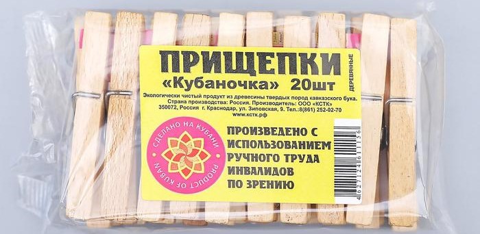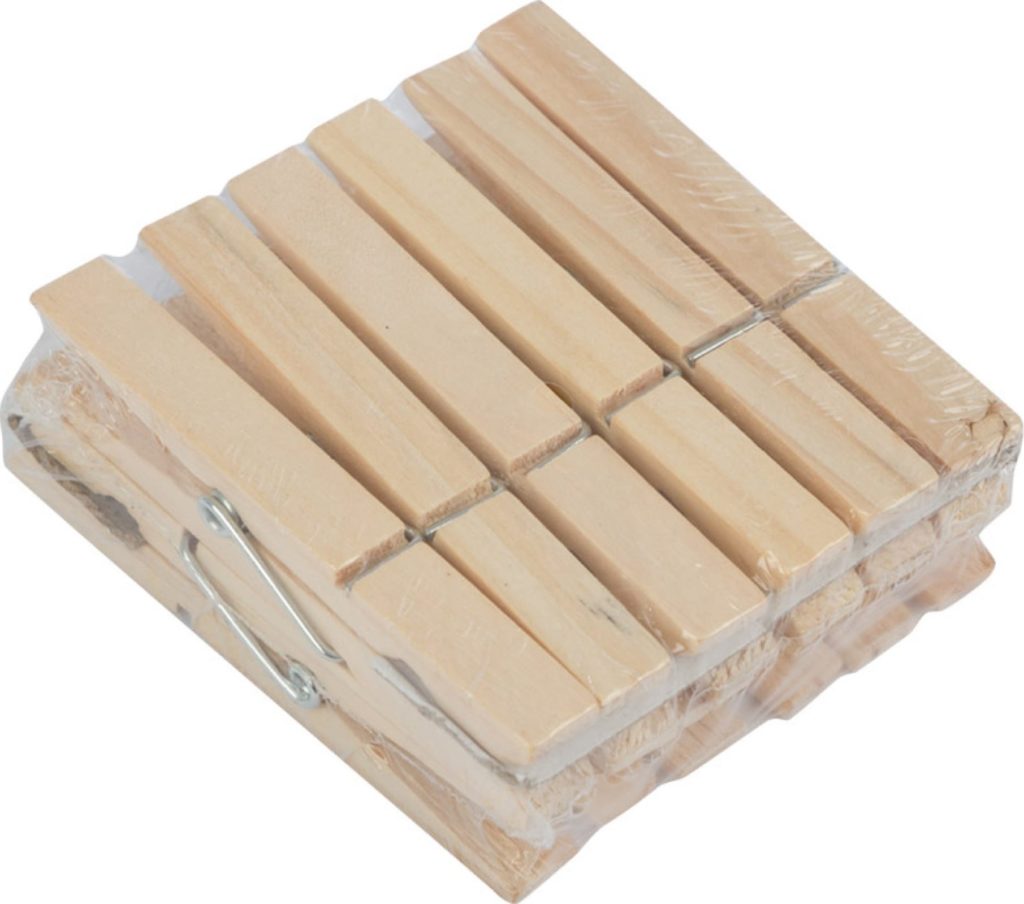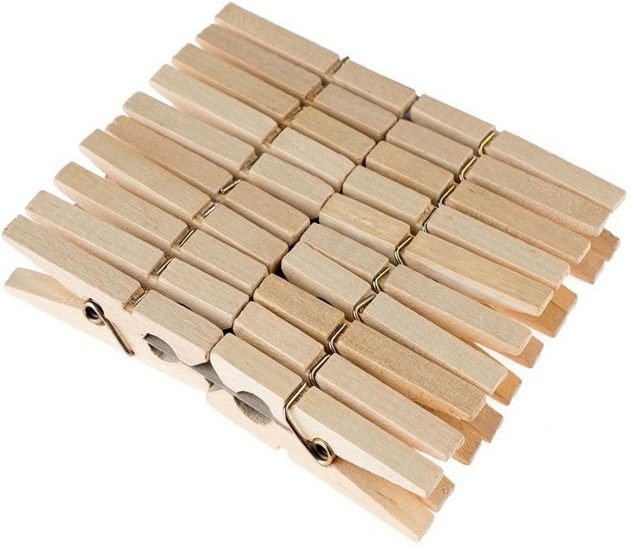 Un ensemble de pinces à linge en bois de haute qualité avec un mécanisme en métal en acier inoxydable. Il est recommandé de stocker dans un endroit sec et sombre, ne pas laisser en contact prolongé avec de l'eau. Le clip est solide, mais ne laisse pas de plis sur les vêtements. Prix : 325 roubles.