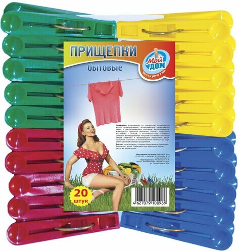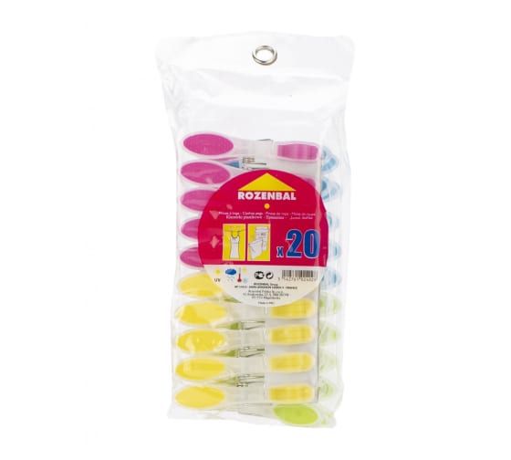 Idéal pour sécher de petits articles tels que des sous-vêtements, des serviettes, des mouchoirs. Applicable aussi bien à l'intérieur qu'à l'extérieur. Convient à toutes les surfaces de séchage (corde, planche à sécher). Emballage : film et insert avec logo de la marque. Quantité : 20 pièces Coût : 228 roubles.