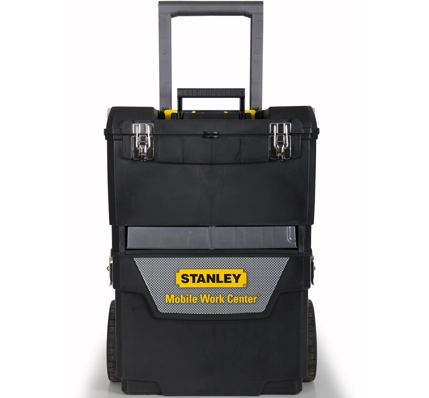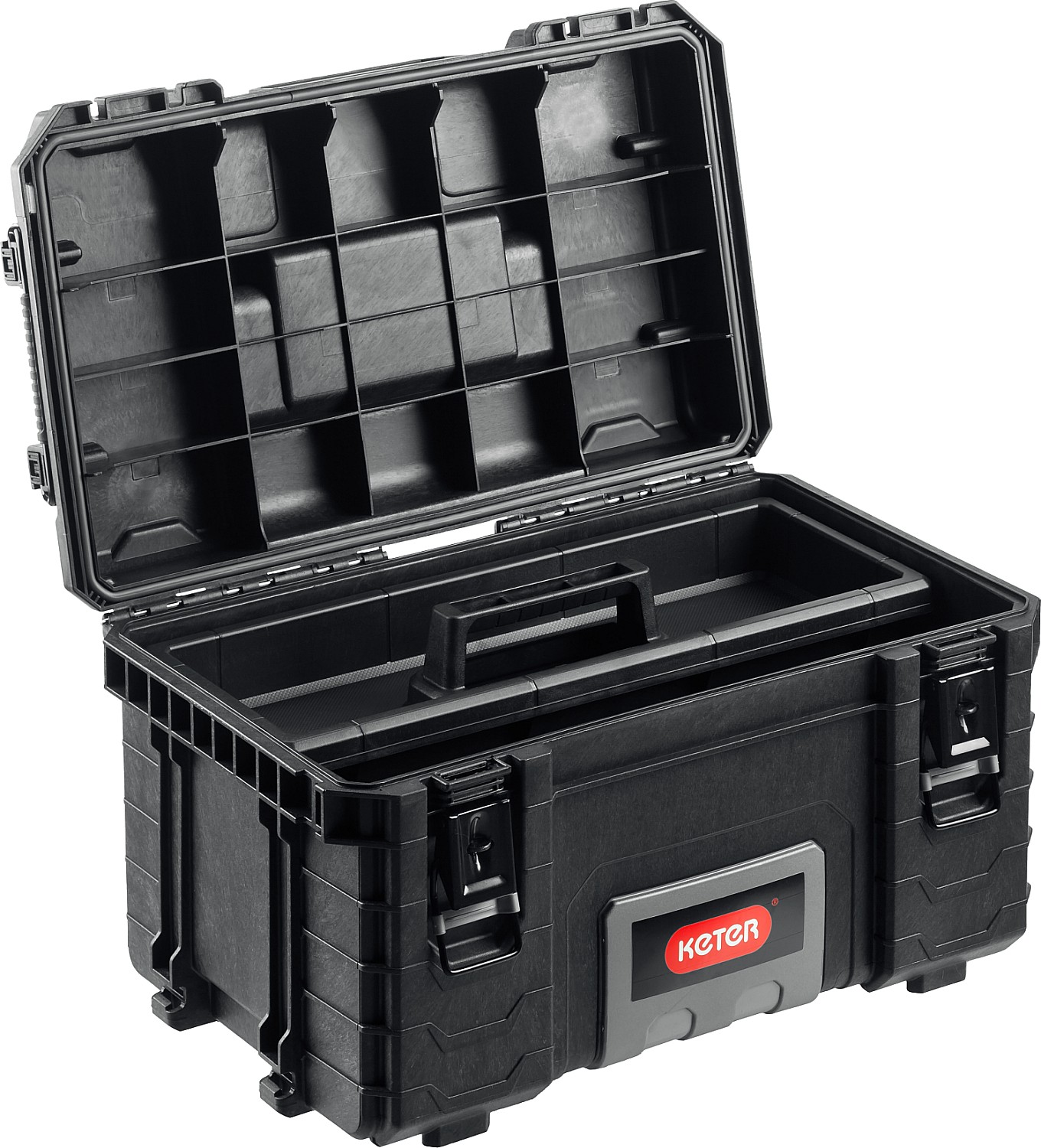 Mallette de grande capacité, en plastique, équipée de roues de type cargo. Un nombre impressionnant de compartiments avec une grande capacité, il y a des compartiments pour les consommables.Convient également aux gros équipements, tels que les meuleuses d'angle ou les perceuses. Il y a un module en forme de carrousel pour placer de petits outils, la section inférieure offre un espace dont la capacité dépasse 25 litres. Il n'y a aucun problème lors du transport, mais certains utilisateurs notent le comportement étrange de la poignée lorsque la valise est fortement chargée. Les dimensions du boîtier sont de 564 par 372 par 552 mm, le démontage en composants est possible.