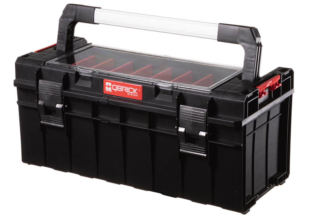 Il est divisé en 3 sections, le compartiment sur le couvercle est équipé de compartiments pour les petites choses, le poids supplémentaire est de 50 kg. Produit en Pologne, les dimensions sont de 545 par 270 par 246 mm. La capacité de charge élevée vous permet de charger une quantité impressionnante d'outils et de transporter confortablement une boîte pleine.
