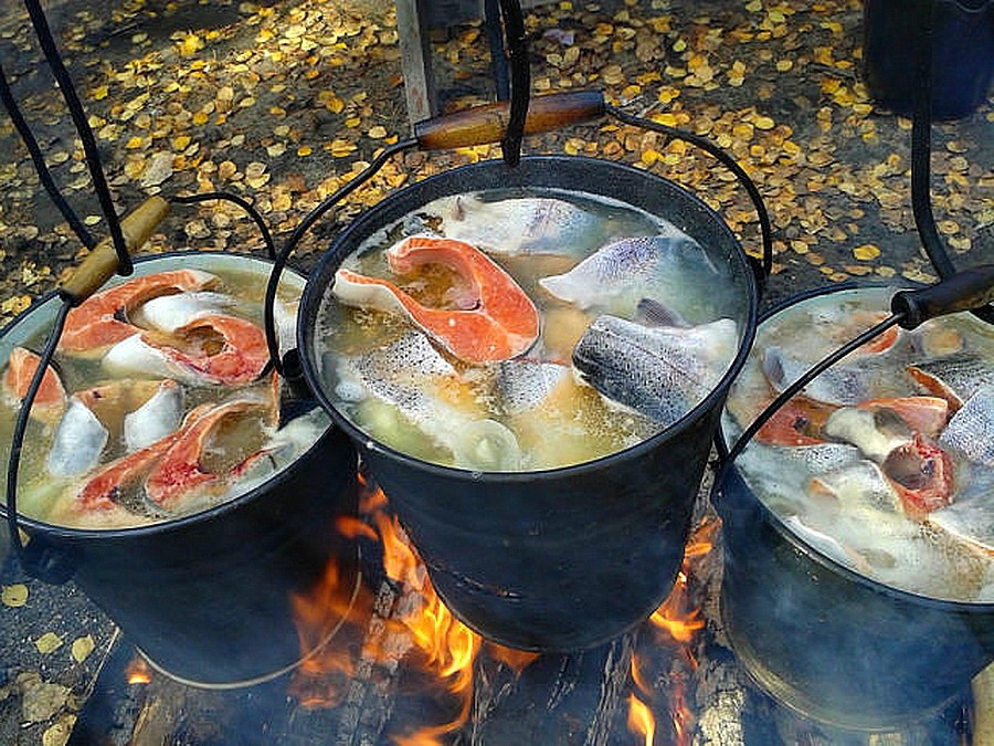Pour les randonnées jusqu'à 7 jours, ne prenez pas plus de 12 kg de nourriture, cela vous permettra de porter moins de poids et de vous sentir mieux dans la nature. Planifiez votre itinéraire, peut-être passerez-vous par des eaux où la pêche est autorisée, puis offrez-vous une délicatesse fraîche.