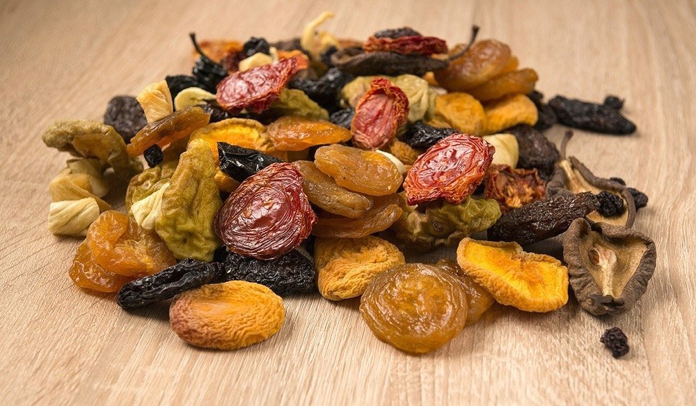 Les fruits secs contiennent de nombreux oligo-éléments utiles, cela aidera non seulement à saturer le corps, mais aussi à soutenir le système immunitaire humain. Ils sont consommés comme plat indépendant (en collation) ou ajoutés aux céréales (au petit-déjeuner ou au dîner).Les fruits secs sont emballés hermétiquement et ne prennent pas beaucoup de place dans le sac à dos.
