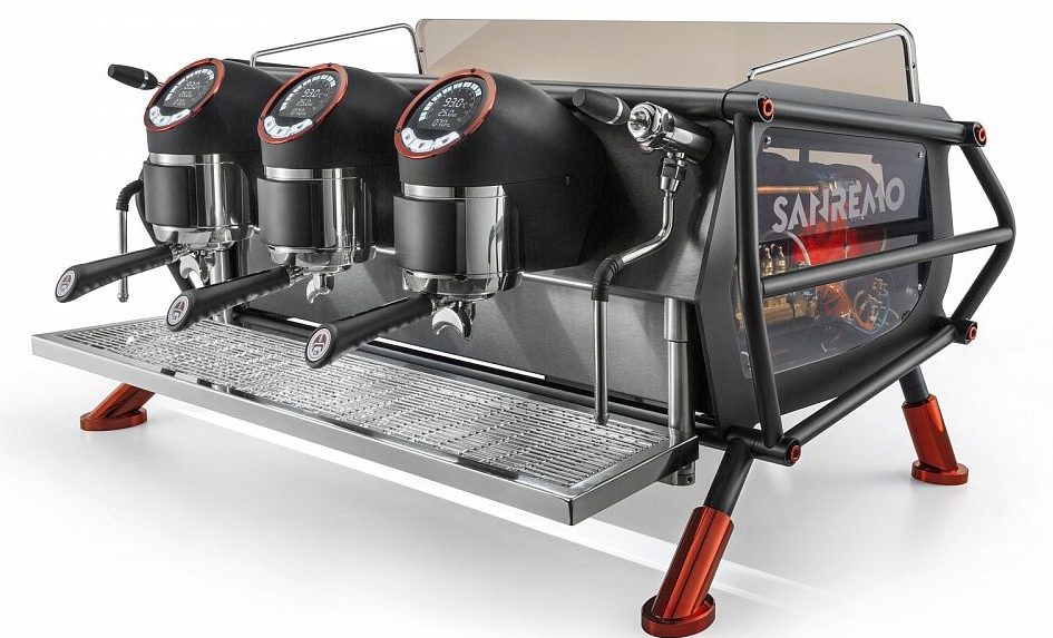 La société italienne a développé et publié un modèle de machine à café, qui n'est pas le dernier parmi ces équipements. L'appareil dispose de trois groupes distincts pour la préparation des boissons, chacun disposant de 4 programmes. Un affichage numérique est placé sur le corps, ce qui permet non seulement de sélectionner une recette, mais également de régler la température, la pression et le niveau du liquide fourni. Les tasses sont chauffées, il existe un programme de nettoyage professionnel de l'appareil, le contrôle est entièrement automatique, ce qui est très pratique car aucune action supplémentaire n'est requise de la part du barista. Le volume total de la chaudière est de 13 litres.