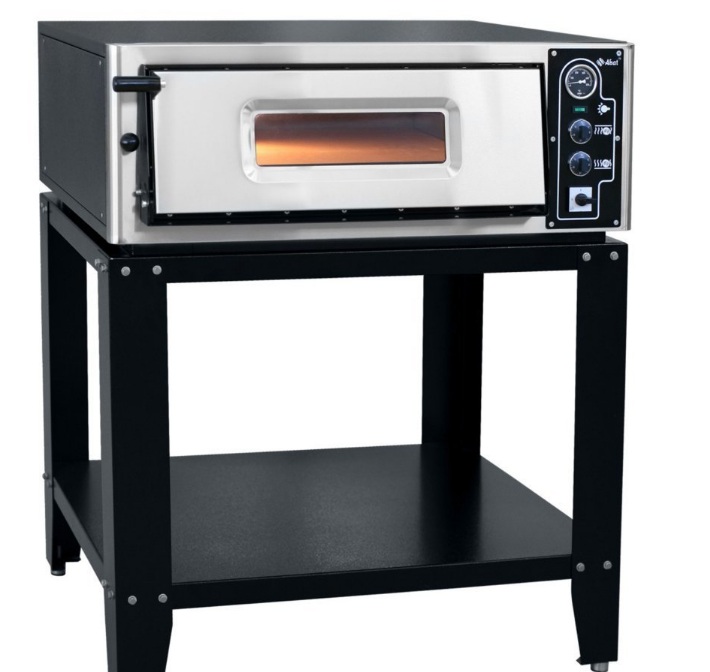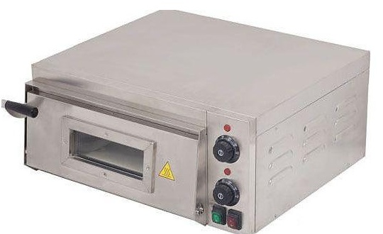 L'installation à chambre unique convient à la cuisson de confiseries, de sandwichs chauds et d'autres produits de boulangerie. Le corps est en acier inoxydable gris. Le panneau de commande comporte deux boutons rotatifs avec un indicateur, deux boutons (vert, rouge) - alimentation, allumer les éléments chauffants (les éléments chauffants sont situés au-dessus et au-dessous). Le thermostat contrôle la température. Dans la chambre, isolée avec de la laine de céramique, se trouve une lampe à quartz qui assure l'éclairage. La porte est articulée, équipée d'une fenêtre de visualisation résistante à la chaleur.