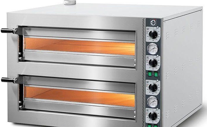 Équipement pour 2 chambres dont la partie avant est en acier inoxydable, les grilles de cuisson sont en pierre, à l'intérieur il y a une isolation en laine de roche, le verre des portes est en matériau résistant à la chaleur. L'équipement est équipé d'une minuterie de préparation mécanique, d'un éclairage interne.