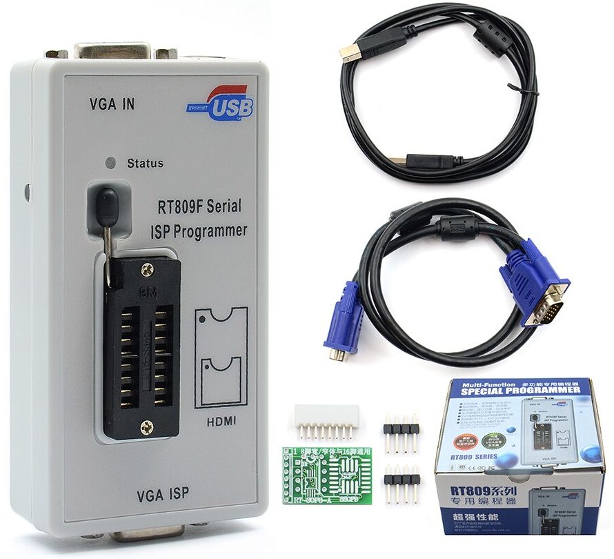 Le modèle RT809F est conçu pour fonctionner avec des ordinateurs électroniques et des périphériques, et l'appareil prend également en charge la mémoire EEPROM I2C ROM reprogrammable effaçable électriquement et la mémoire vive (RAM) DDR1/DDR2/DDR3. De plus, RT809F est compatible avec MCU RTD2120, 93 MircroWire, Micom. WINBOND étend les capacités de l'appareil, attirant ainsi l'attention des personnes impliquées dans les réparations de divers équipements (techniciens radio, TV, etc.), quel que soit leur niveau de compétence. Compte tenu des paramètres du modèle, on peut dire que c'est l'un des plus rentables, car il combine un faible coût et une large compatibilité avec les microcontrôleurs.