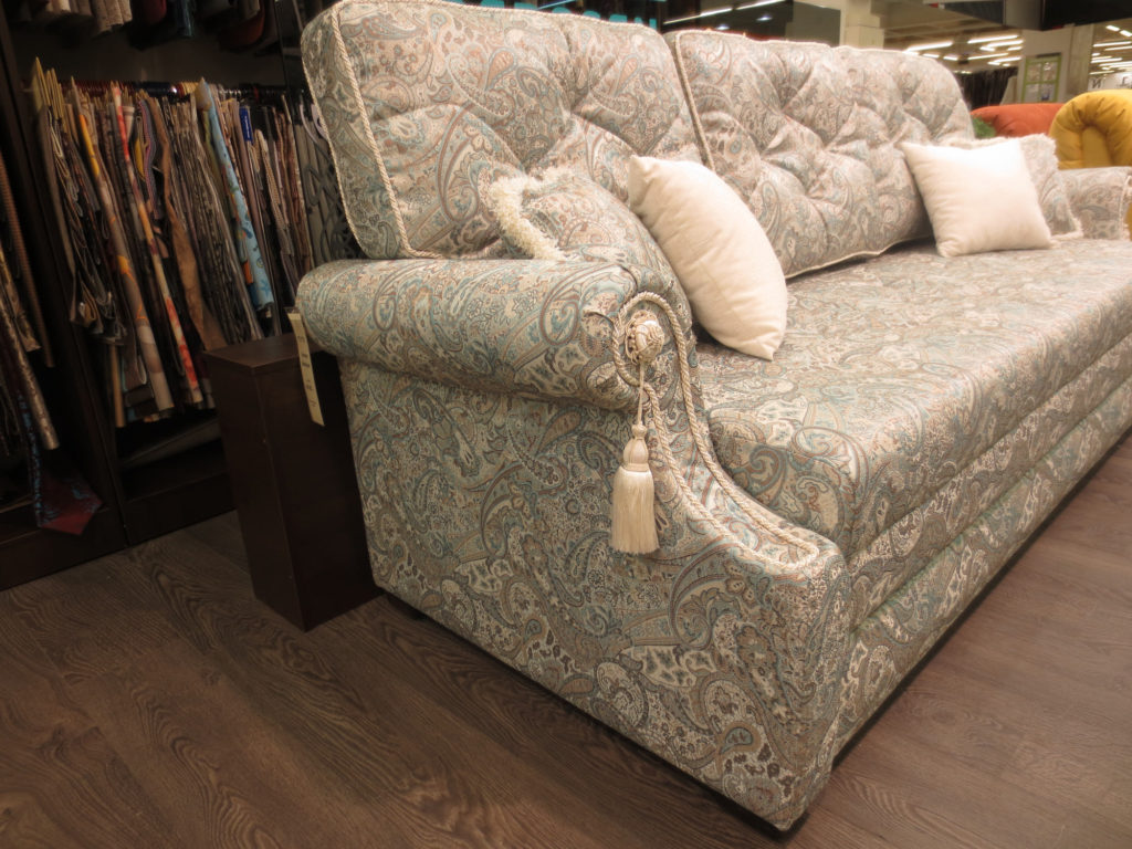 La tapisserie ou le tapisserie d'ameublement de jacquard a un aspect noble. En raison du grand choix de couleurs et de motifs, il est largement utilisé par les fabricants. Mais les canapés avec un tel rembourrage ne sont pas recommandés pour une utilisation dans des pièces décorées dans un style minimaliste.