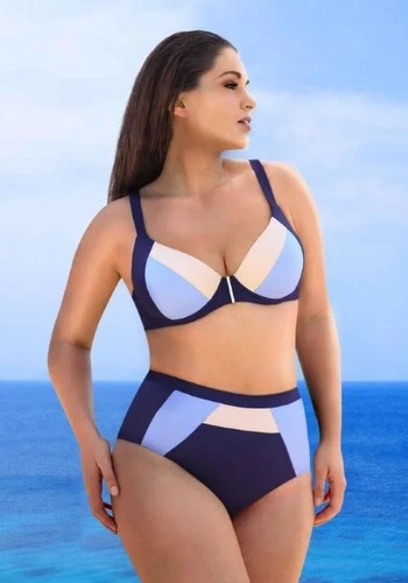 Le tissu contient du polyamide, qui s'étire bien, mais conserve également sa forme. La conception du maillot de bain a des propriétés amincissantes.Les bonnets sans caoutchouc mousse ont des inserts correctifs latéraux et de larges bretelles réglables. Le dos à encolure ovale se fond parfaitement dans un bas à la coupe classique. Le coût est de 5380 roubles, une commande est disponible chez AliExpress. La grille des tailles correspond aux tailles russes.