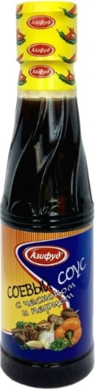La marque russe produit de nombreux produits différents de la cuisine chinoise, vietnamienne et japonaise. Il est connu des clients pour son assortiment bon marché et ses assaisonnements plus ou moins épicés. La vinaigrette orientale liquide à l'ail et au poivre ajoute du piquant aux plats de viande et de poisson, ainsi qu'aux salades de légumes. La description énumère de nombreux composants chimiques.