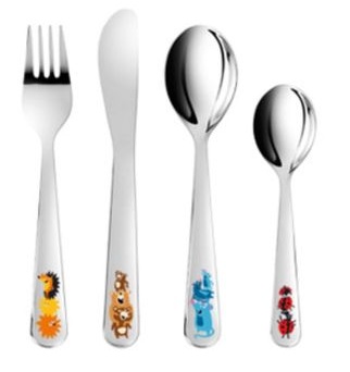 Si vous choisissez des ensembles pour enfants d'âge préscolaire, leur taille sera plus petite que celle des adultes, mais ils sont fabriqués dans le même matériau. Bien qu'il soit intéressant de noter que souvent les enfants d'âge préscolaire, imitant les adultes, refusent d'utiliser des appareils compacts et choisissent une cuillère / fourchette, "comme leur mère".