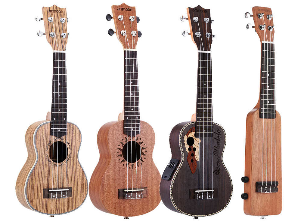 Selon vos envies, vous pourrez choisir un ukulélé avec ou sans micro, un soprano miniature ou une version concert plus solide. Les Uki gardent longtemps le système, ils se distinguent par un son brillant et sonore. Il est possible d'accorder chaque corde (à cet égard, la conception est similaire aux guitares électriques).
