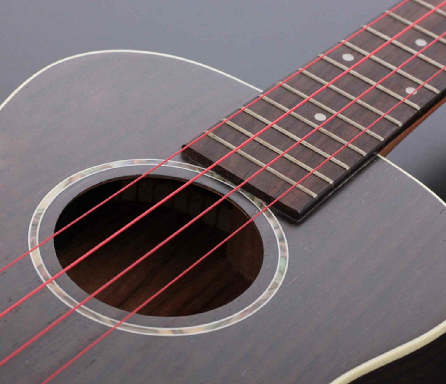 En général, le ukulélé n'est que légèrement différent de la guitare. Même corps creux en bois ou stratifié, même trou résonnant rond. Mais sur une touche raccourcie et rétrécie, seules 12 frettes et 4 cordes conviennent.