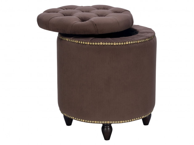 C'est un modèle universel conçu pour être utilisé dans la chambre, le salon et le couloir. Il a une forme ronde avec un diamètre de 40 cm et une hauteur de 43 cm, ce qui est une excellente option lorsqu'il est placé n'importe où dans la pièce. Fabriqué à partir de contreplaqué de bouleau recouvert de velours de couleur chocolat de qualité avec une décoration de cravate et de clous, il représente un style classique intemporel qui ornera n'importe quel intérieur à tout moment. Les pieds en bois donnent une forme particulière à la banquette. Le "truc" original des fabricants avec un couvercle amovible enrichit le modèle de fonctionnalités supplémentaires.