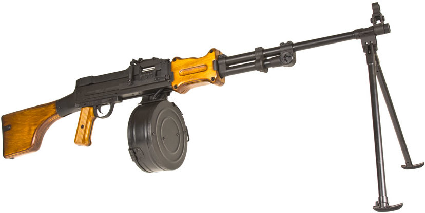 Cette mitrailleuse est une copie airsoft de la mitrailleuse soviétique PKM, qui a été mise en service en 1961.