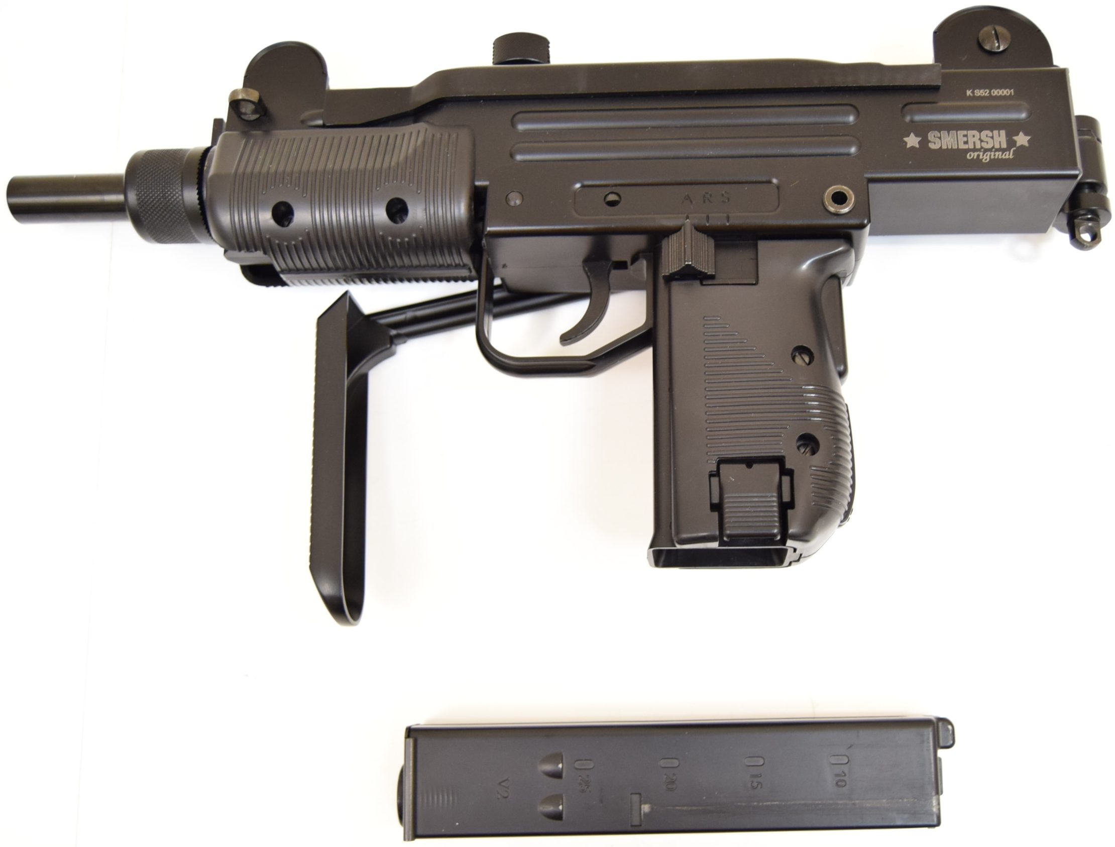 La mitraillette d'ASG vous surprendra agréablement. Il est en métal mais comporte des pièces en plastique. L'arme a une crosse repliable, ainsi qu'une régulation Hop Up pratique, grâce à l'imitation d'un trou pour retirer les cartouches. Le chargeur a un volume de 480 balles et le poids du lecteur avec un chargeur plein atteint 1,6 kilogramme.