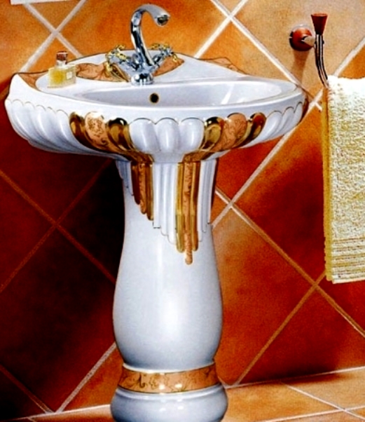 | Sur un socle | Il existe souvent des modèles de formes ovales, rondes et rectangulaires. Communément appelé "tulipe". Il est supposé que le lavabo sera monté sur le mur et qu'un meuble sera monté en dessous, ce qui aidera à masquer les communications. Basé sur de nombreuses critiques, cette option est la plus préférable. L'avantage est la facilité d'installation et le coût raisonnable. |