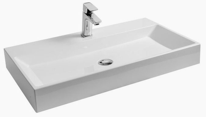 L'évier de forme rectangulaire a un aspect élégant. Comme dans la plupart des cas, la faïence sanitaire est utilisée pour réaliser la structure. Dans la partie centrale, il y a un trou pour le mélangeur. Il n'y a pas de connecteur pour le débordement. Dimensions : 40x48x22 cm.