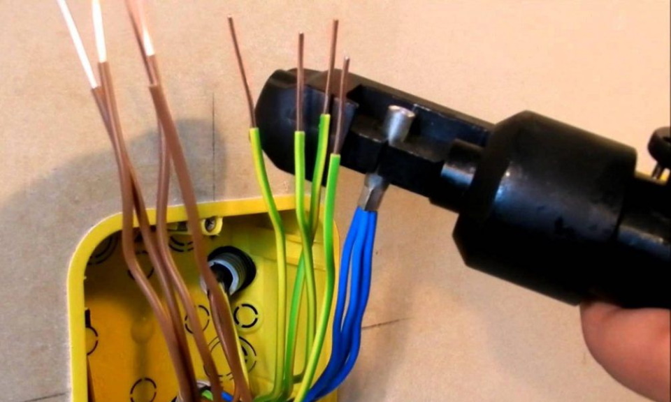 Connexion fiable des conducteurs en les plaçant dans un manchon métallique, suivi d'un sertissage avec un outil spécial, suivi d'une isolation.
