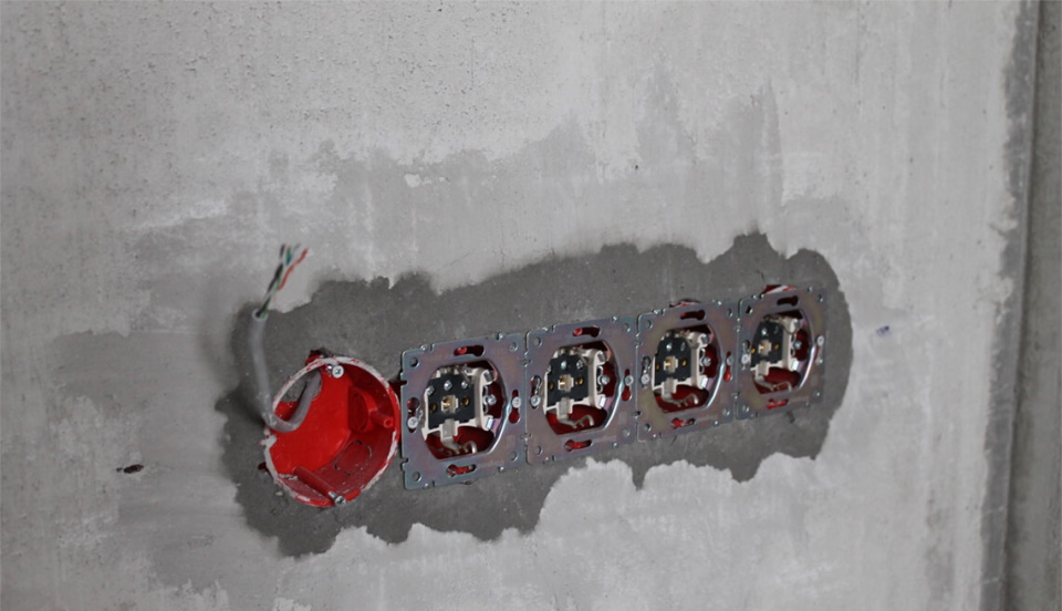 Les boîtes à l'intérieur du mur ne sont pas montées, mais fixées à la surface à l'aide de dispositifs de fixation. En règle générale, ils sont installés dans des locaux de production, car ils ont l'air moche. Cependant, cela permet un accès rapide au câblage. L'installation est simple et pratique.