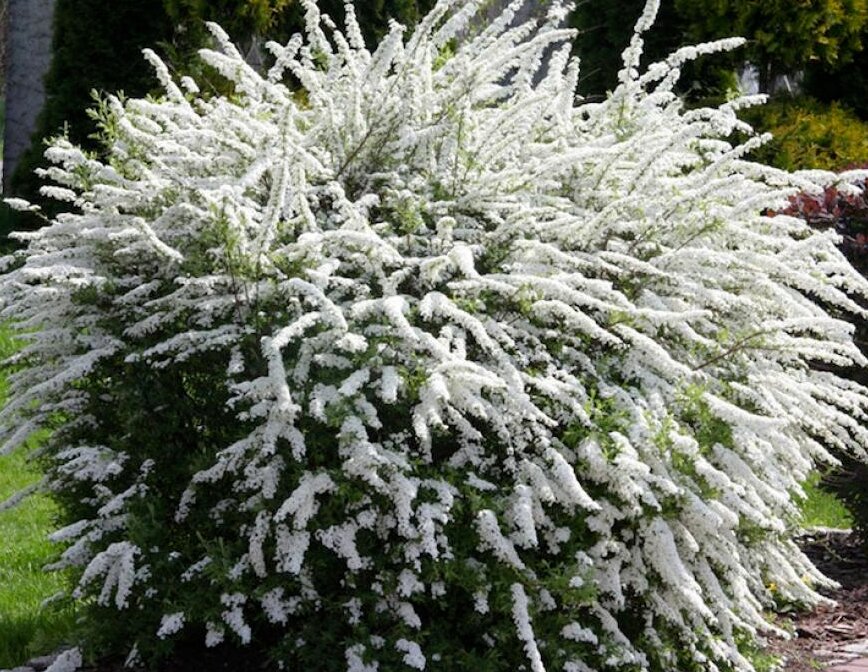 La spirée grise de la variété Grefsheim se distingue par des pousses arquées couvertes d'un grand nombre de doubles bourgeons blancs lors de la floraison. Bourgeons : dimensions - 1 cm, inflorescences en parapluie. Durée - 40-45 jours. Agréable parfum fleuri.