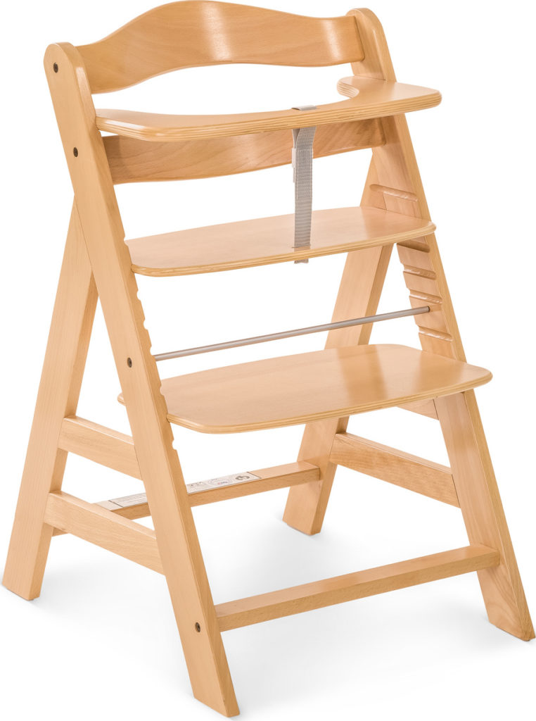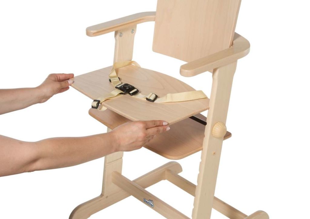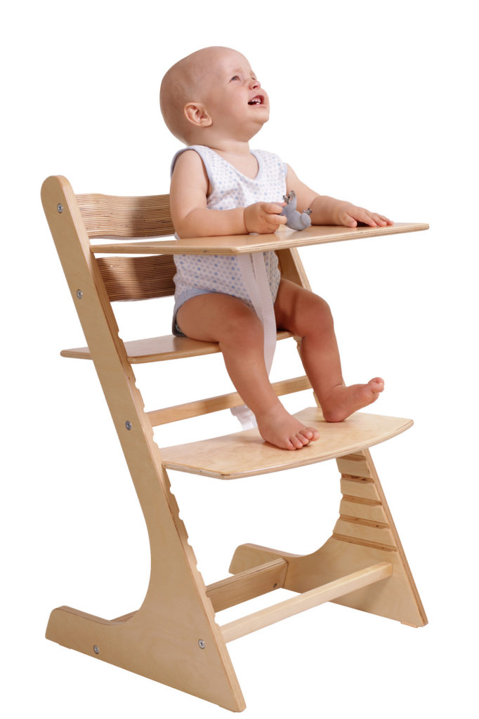 Pour les petits enfants, une table amovible et des supports latéraux sont fournis. Cela réduit le risque que bébé glisse. La chaise est en bois, qui n'est pas sujet aux fissures et aux dommages.