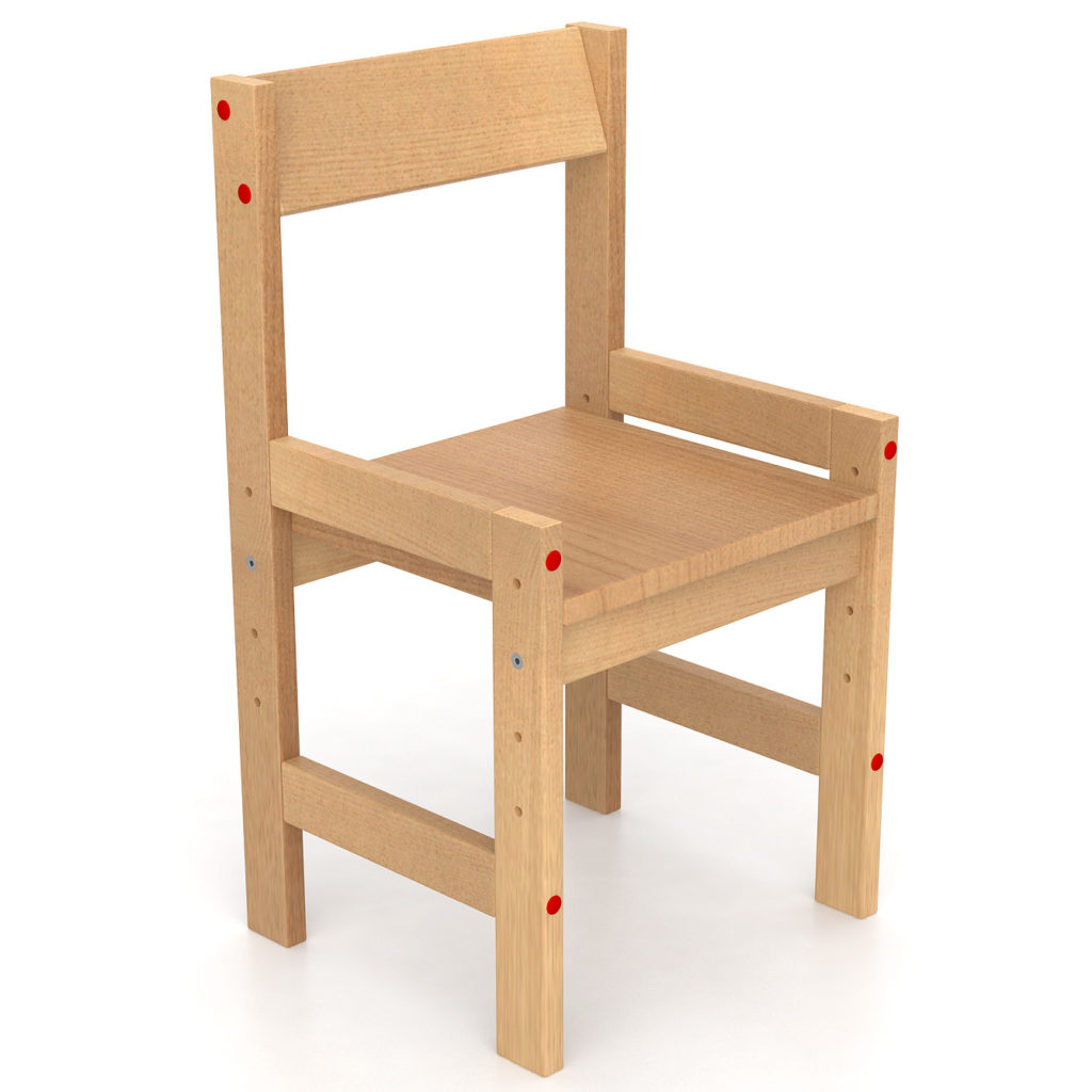 Les chaises sont recouvertes d'un vernis écologique fabriqué en Allemagne qui répond aux exigences des documents réglementaires européens DIN EN 71-3 (les exigences de sécurité pour les jouets et les meubles pour enfants sont entièrement respectées).