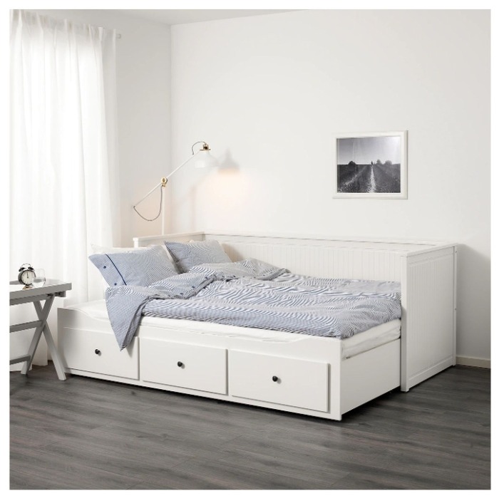Une option intéressante est présentée dans la ligne Hemnes, un mobilier moderne qui se transforme d'un lit de jour standard en un lit double à part entière. Pour ce faire, il suffit de retirer la base et de l'ajouter au matelas.
