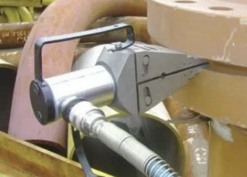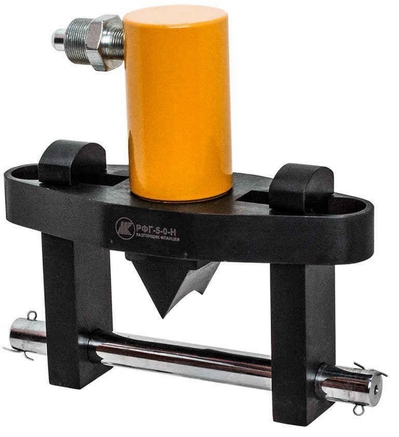Un tel équipement est utilisé pour écarter les joints, dans lesquels la taille des goujons peut atteindre 41 mm avec une longueur totale de bride allant jusqu'à 92 mm.Le démontage de l'ensemble avec un soin particulier permet l'utilisation simultanée de deux appareils similaires, situés de part et d'autre du pipeline en cours de traitement. Dans ce cas, le doigt de l'accélérateur doit être inséré dans le trou à la place de la goupille, et alors seulement les deux "pattes" de l'appareil sont placées dans une direction symétrique l'une en face de l'autre. De cette façon, il n'y aura pas de charge excessive qui pourrait provoquer un déplacement non autorisé de l'ensemble de la connexion. De plus, l'huile est fournie de force au système hydraulique (ou au cylindre, si nous parlons d'un modèle autonome), qui prolonge la tige, et la pression résultante dilate le raccord de tuyau dans sa coupe. Avec l'arrêt de l'alimentation en huile, la tige revient à sa position d'origine et la connexion à bride est fermée.