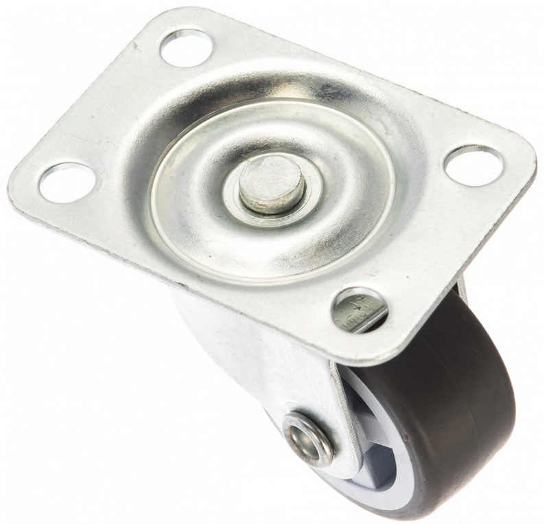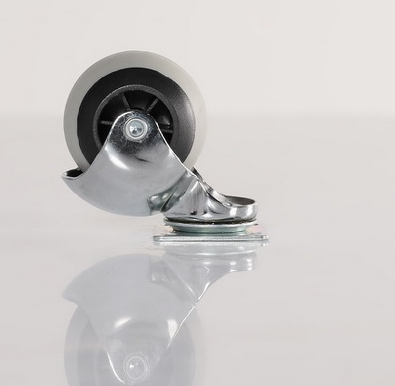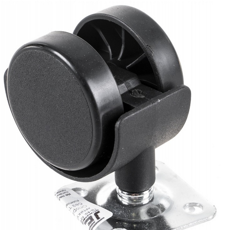 Un support de roue de haute qualité et massif avec une fonction de rotation, mais sans capacité de blocage. Il est parfait pour les meubles de grande et moyenne taille, les déplaçant aussi bien sur tout type de sol. Le plastique souple mais résistant dont est faite la partie mobile peut durer longtemps. Le support lui-même est monté sur quatre boulons, ce qui augmente sa fiabilité. Le pays d'origine est la Suisse, le coût recommandé pour les chaînes de magasins est de 25 roubles.