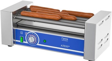 Les équipements thermiques de bureau sont utilisés par les établissements de restauration rapide, les bars, les cafés, les buffets, les cinémas. Le nombre de rouleaux vous permet de servir un grand nombre de clients à la fois. Grâce au revêtement antiadhésif, les saucisses ne collent pas au métal.
