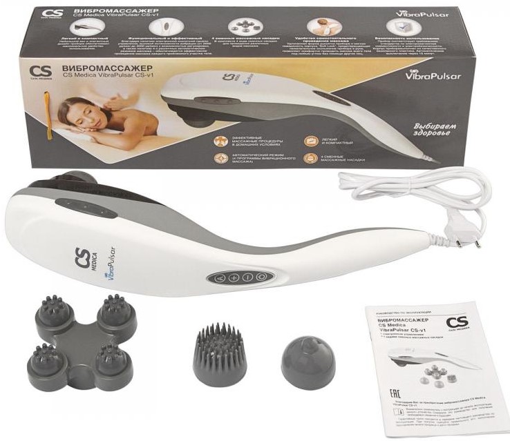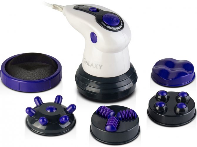 Grâce à plusieurs buses interchangeables, il masse facilement différentes zones. Le contrôle de la vitesse est fluide, il y a la possibilité de chauffer et de régler le mode IR.Ensemble complet : buse doigt, buse rouleau, buse boule, buse ondulée, buse filet de protection. Puissance : 50W. Poids : 1,16 kg. Dimensions : 25,7x19,7x11,2 cm Prix : 1423 roubles.