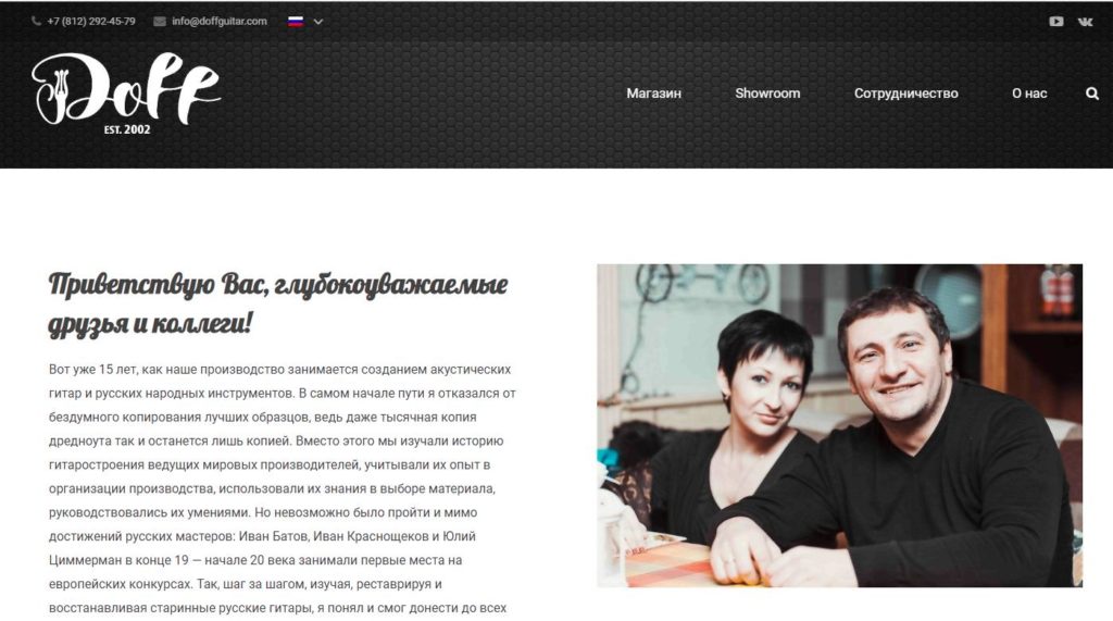 Située à Rostov-sur-le-Don, la société a été fondée par Oleg Khmelevsky, tombé amoureux de cet instrument dès ses années d'école. Malgré sa jeunesse, cette entreprise mise sur l'unicité et la qualité, et non sur une grande diffusion de modèles moyens.Les artisans expérimentés n'ont pas peur des difficultés et sont prêts à accepter n'importe quelle commande.