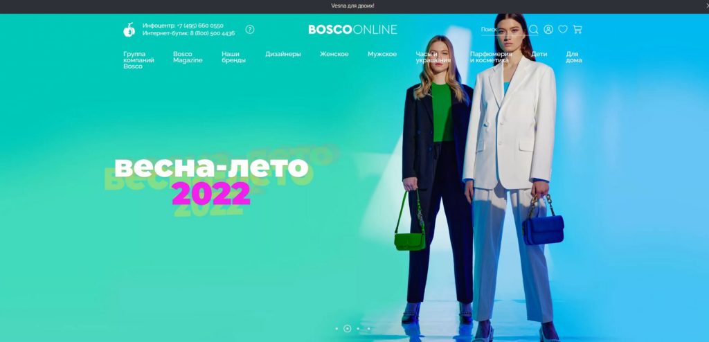 Le site internet de la marque a un design moderne. Les numéros de téléphone du centre d'information, de la boutique Internet sont mis en évidence. Catégories du catalogue : femme, homme, montres et bijoux, parfums et cosmétiques, enfant, maison.